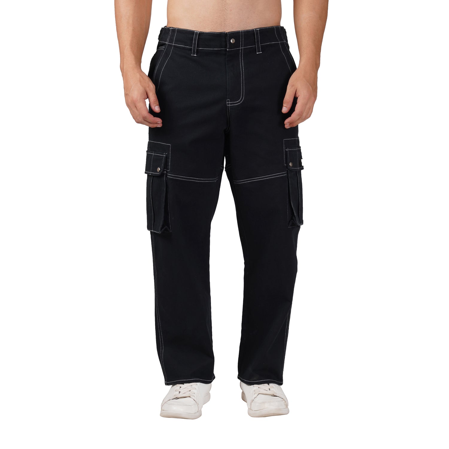 The Black Contrast Stitch Cargo Pants from SLAY. are crafted from premium stretch twill fabric — giving you structure, movement, and all-day comfort in one bold fit.