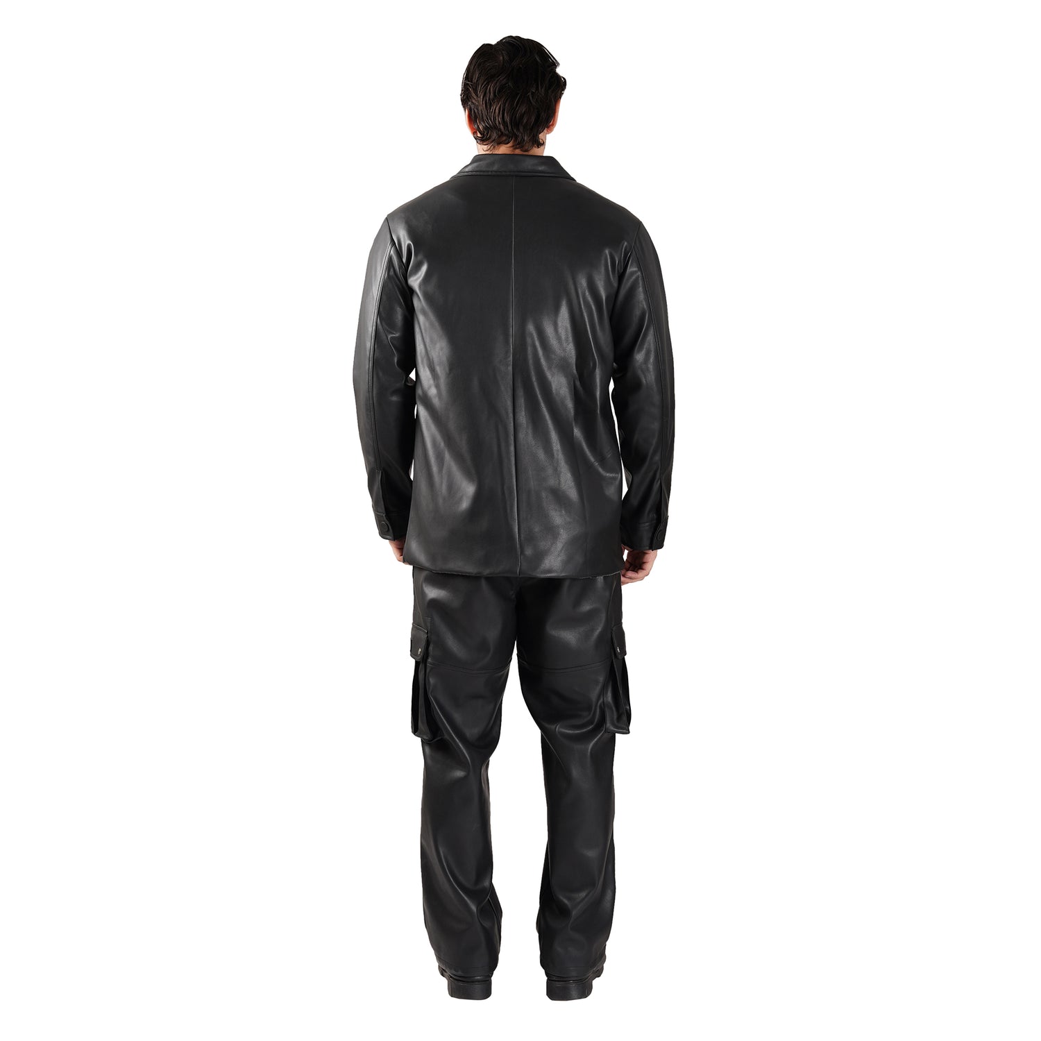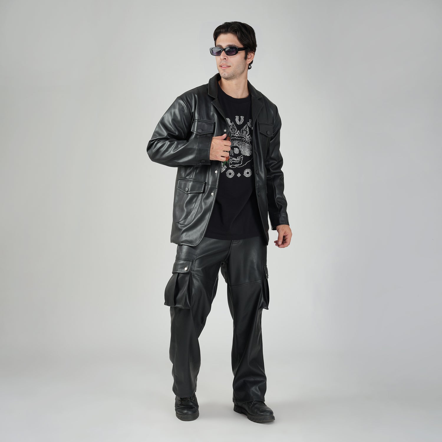 The Black Stretch Faux Leather Cargo Pants from SLAY. bring statement streetwear into luxury territory. Crafted from premium stretch leatherite, they combine the high-shine edge of leather with flexible comfort that moves effortlessly with you.