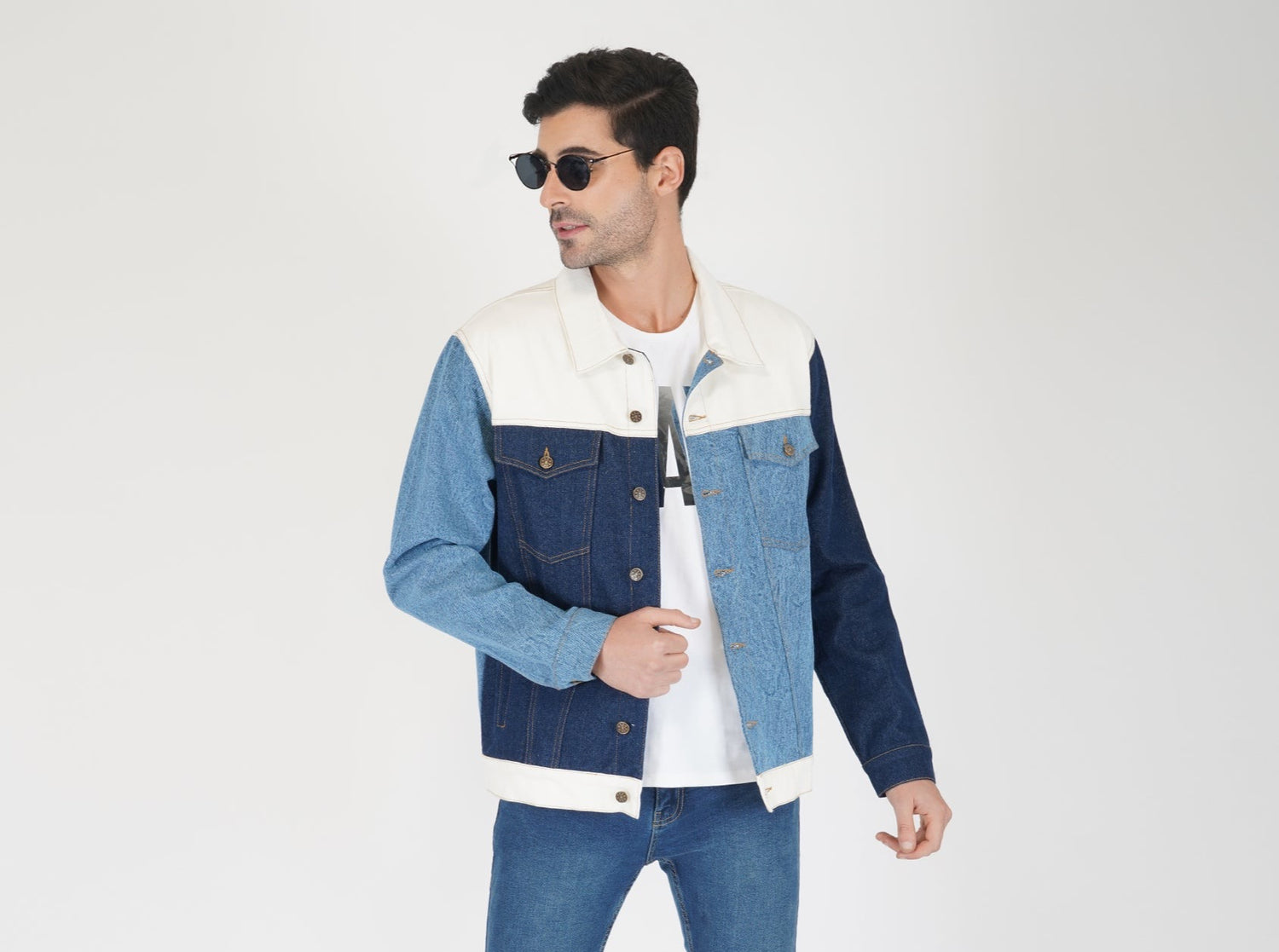 SLAY. Men's Full Sleeves Colorblock Denim Jacket