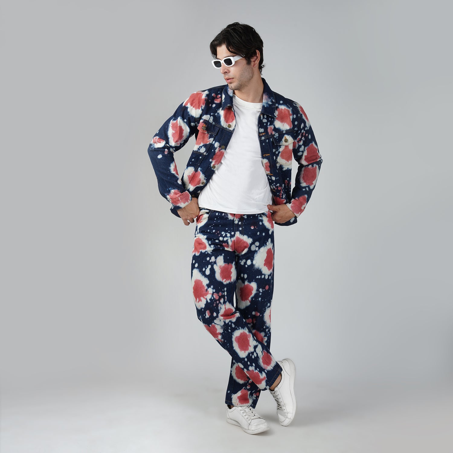 This bold tie-dye denim co-ord set from SLAY. fuses streetwear edge with artistic flair. Crafted from premium denim, it features a unique red and white tie-dye pattern on a deep indigo base — no two pieces are ever the same.