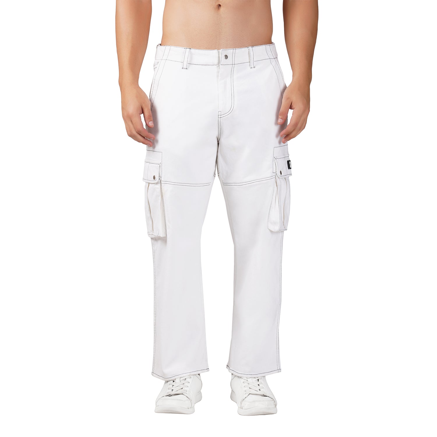 The White Contrast Stitch Cargo Pants from SLAY. redefine modern streetwear — crafted from premium stretch twill fabric for ultimate comfort and mobility.