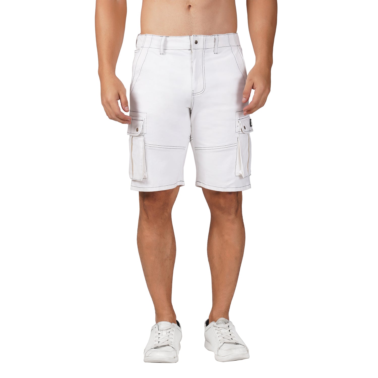 The minimal all-white design combined with functional cargo pockets gives these shorts a fresh, modern edge — ideal for summer days, travel fits, or monochrome looks that never miss.