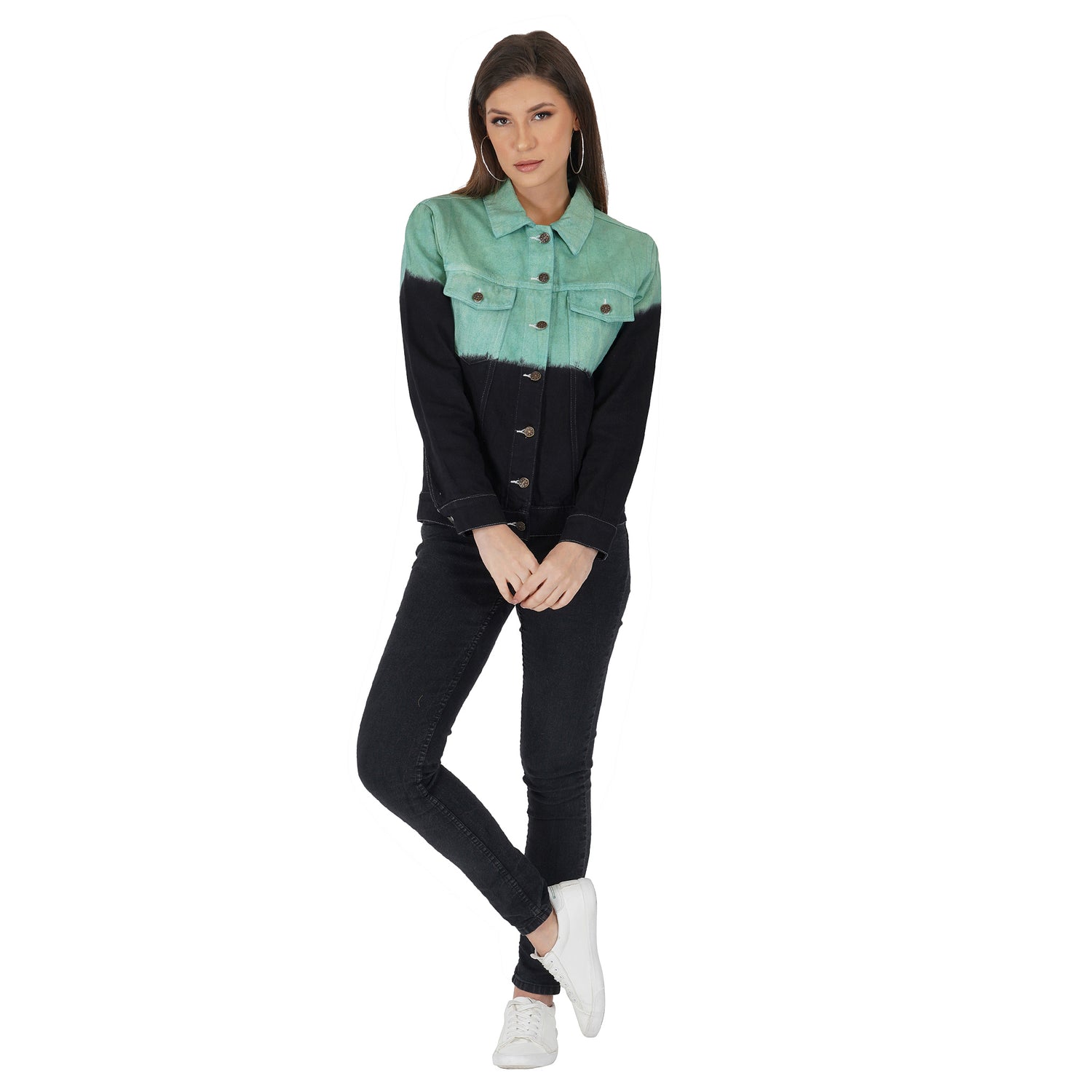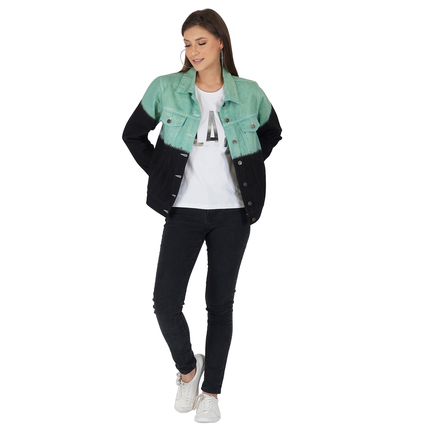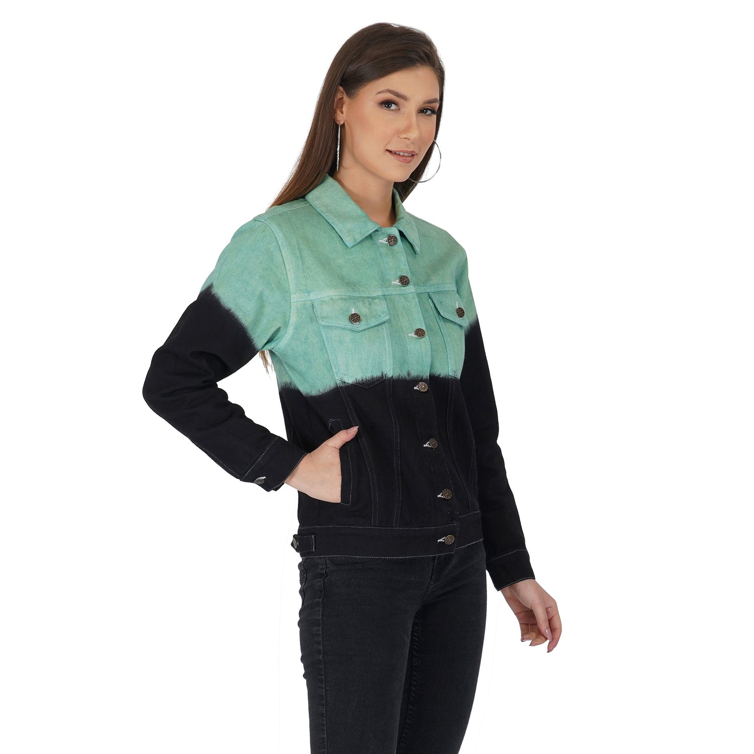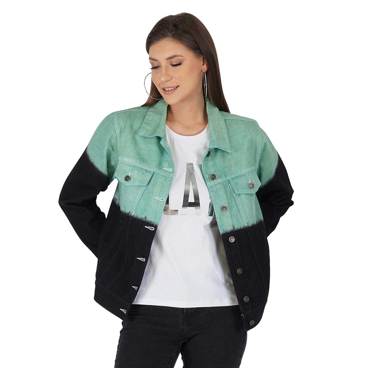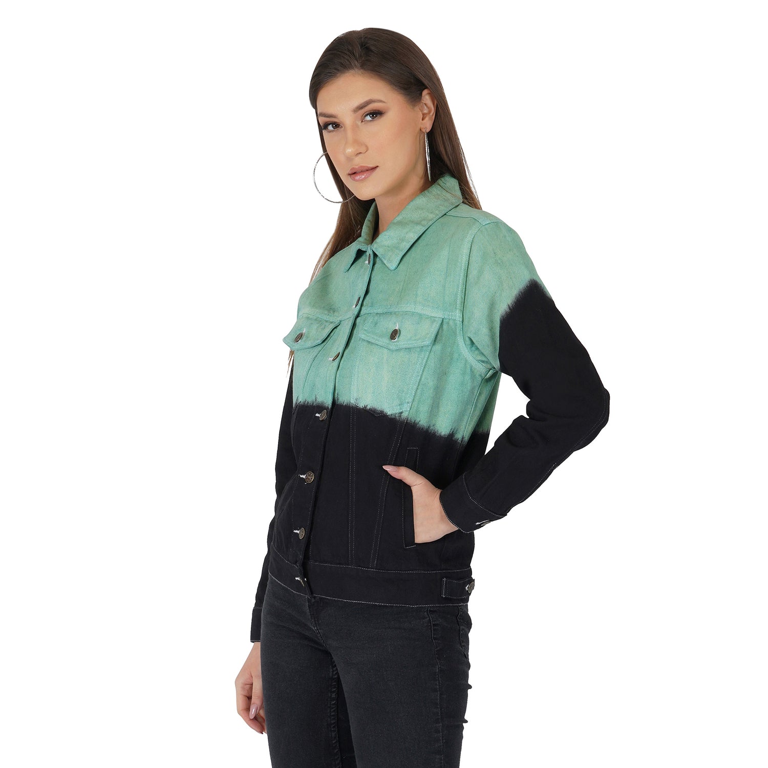 SLAY. Women's Green & Black Ombre Denim Jacket