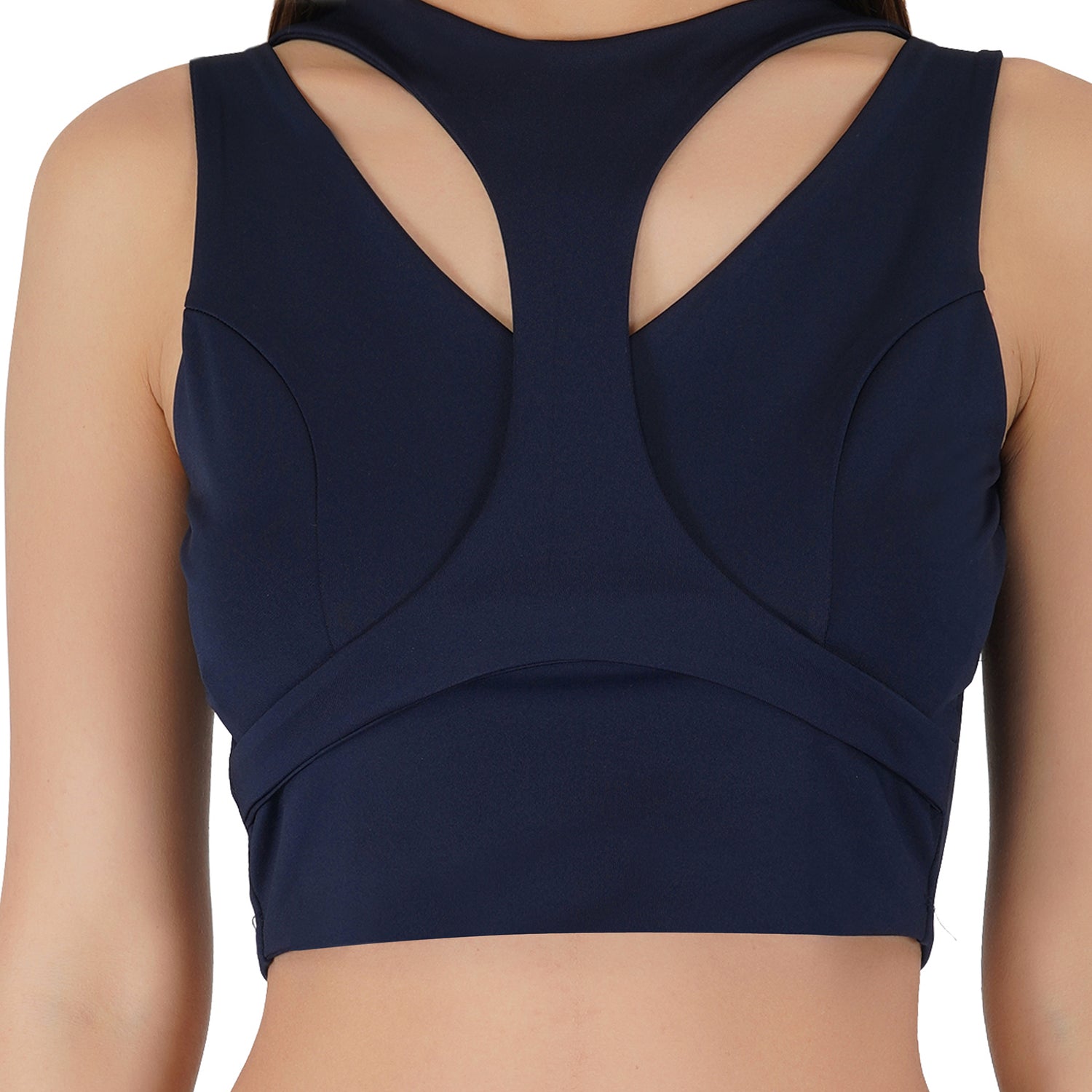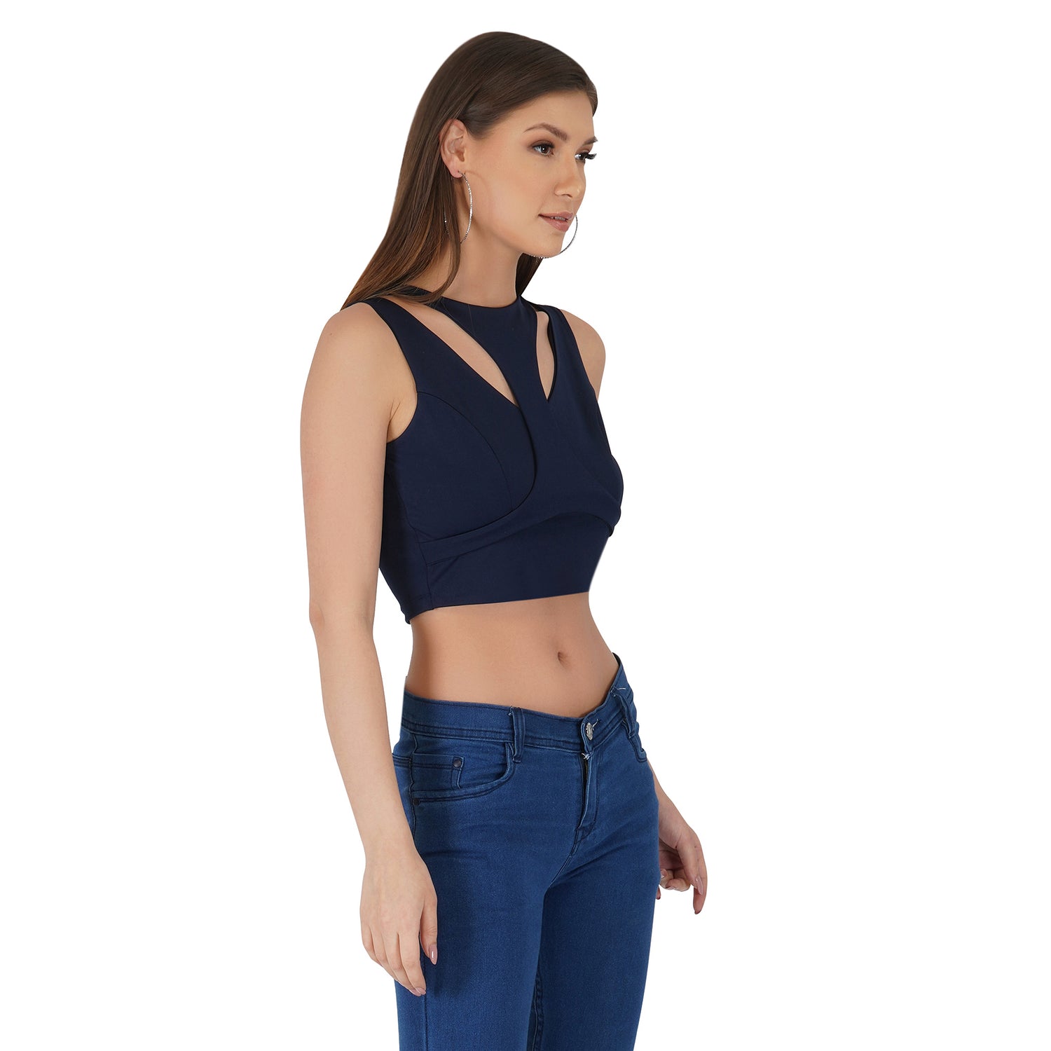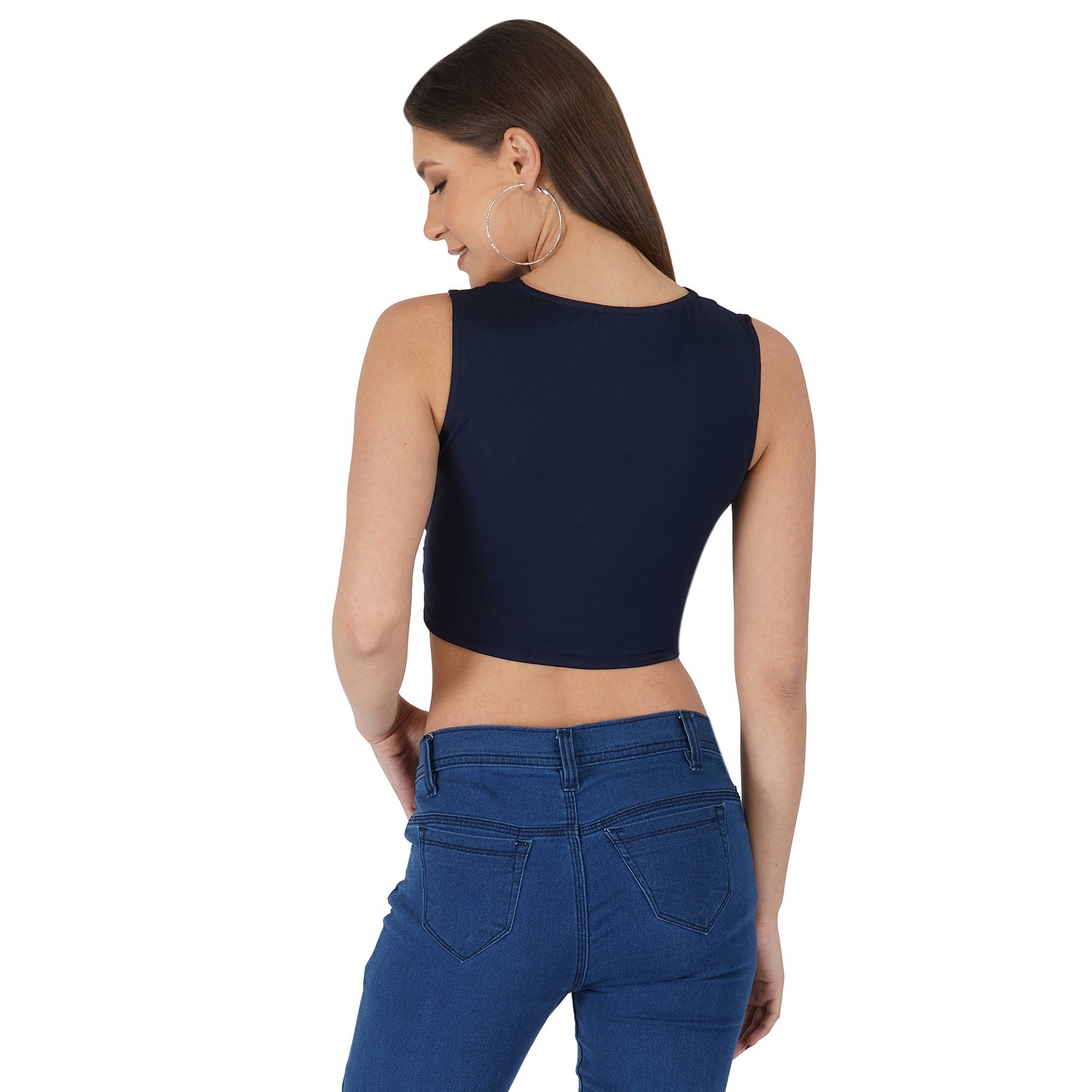 SLAY. Women's Navy Blue Sleeveless Asymmetric Crop Top